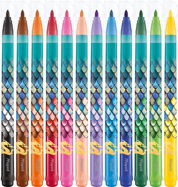 Draconische viltstiften, uitwasbaar op de meeste textielsoorten, geblokkeerd medium punt met zachte top. Droogt niet snel uit, zelfs na 1 week zonder dop.